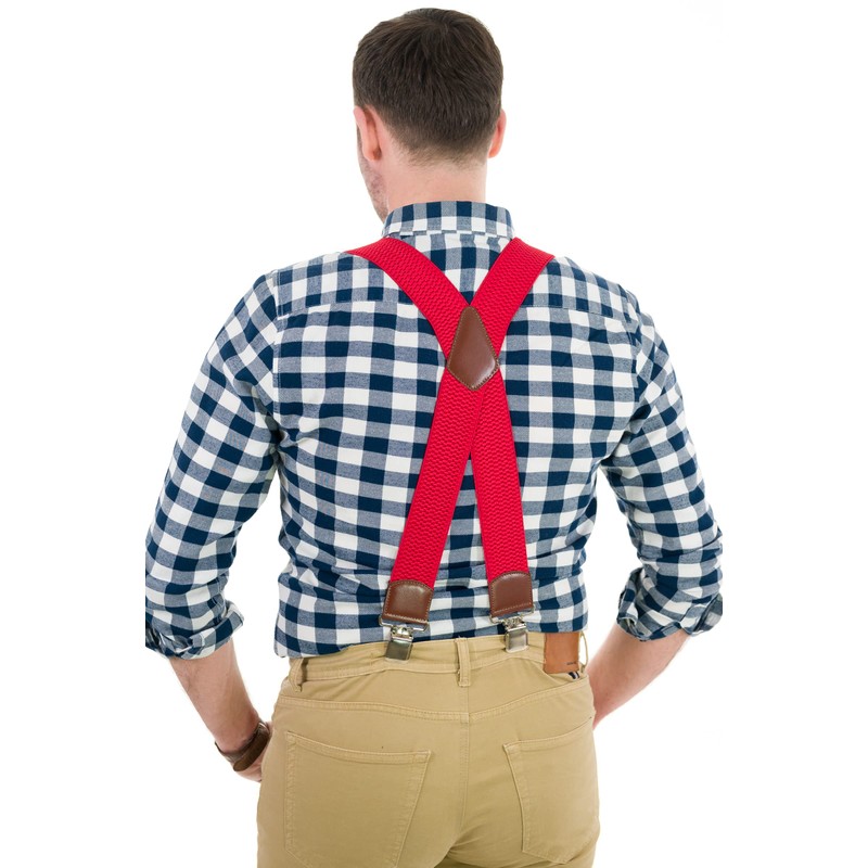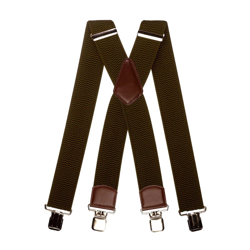 Whether you are looking for a pair of men's suspenders for formal occasions or for physical work, the durable X suspenders are designed to last. With their extra wide straps, thick, high-quality fabric and strong clips, the Olata suspenders are just the right combination of style and durability you need for everyday wear. Although they are durable enough to be used as work braces, they are also suitable for more formal occasions, including office outfits due to their style and quality of the material. The X-shaped design provides the necessary grip with four attachment points, while the leather-reinforced cross piece ensures the clip-on suspenders feel robust but comfortable. The suspenders are available in a wide range of colours, from muted tones to bold reds and greens. The 5 cm wide straps can be adjusted up to 120 cm (unstretched), making them perfect for men up to 1.94 m tall. With 76% polyester and 24% elastane content, the extra wide suspenders are comfortable and durable. If you are looking for a pair of elastic suspenders for everyday wear or work, this adjustable model is a great option.