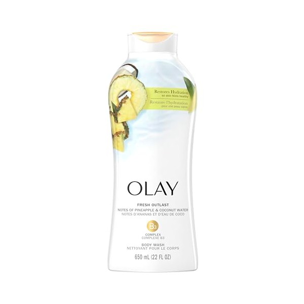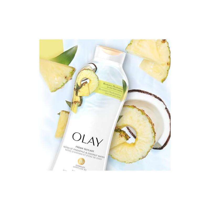 Delight your senses while hydrating* your skin with Olay Fresh Outlast Body Wash and transform your cleansing routine with the rejuvenating aroma of pineapple and coconut water. Enriched with Vitamin B3 Complex, this hydrating* body wash gently cleanses leaving your skin feeling refreshed. It also restores hydration* so skin feels healthy. Our paraben-free body wash is formulated to work for all skin types and for all shower routines. Simply lather up and rinse away. It’s also backed by over 65 years of beauty science for beautiful, healthy skin you can see and feel. *Vs. regular soap