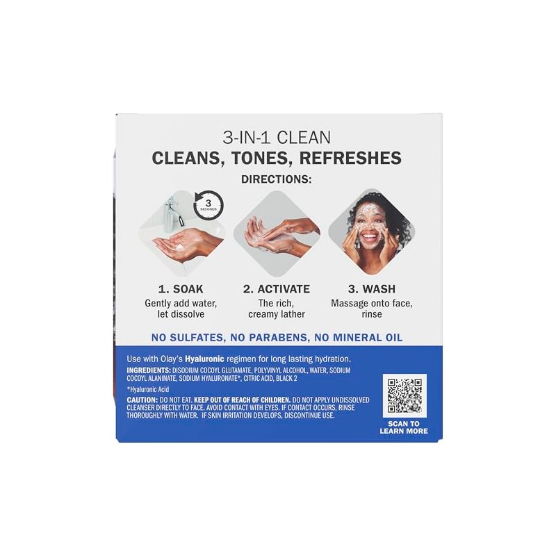 Ready for a new, way to clean your face? Check out NEW Olay Cleansing Melts + Hyaluronic. A water-activated cleansing pad that dissolves into a dense, creamy microbubble lather that cleans, tones, and refreshes for a 3X better clean.One perfectly dosed pad delivers a luxuriously silky lather for a deep yet gentle clean to effectively remove dirt, oil, SPF and makeup, leaving you with a truly unmatched clean feeling.OLAY Cleansing Melts deliver 3-in-1 benefits to cleanse, tone, and refresh because who doesn't love a multitasking skin care product?Use with Olay's Hyaluronic regimen for long lasting hydration.IT WORKS: A deep clean for your entire face in just one meltIT'S FUN: Watch and feel the melt transform in seconds.IT'S SAFE: Dermatologist tested. Perfect for all skin types: Normal, Oily, Dry and safe for Sensitive Skin and gentle on the eyesIT'S Cleansing Reinvented: An innovative, elevated experience that rivals a spa-like clean.Fragrance Free. No Sulfates, No Parabens, No Mineral OilOlay's Patented Facial Cleansing Technology* includes 7 ingredients, which is 6x less than some traditional cleansers. With fewer, more intentional ingredients, Melts work smarter, not harder, to deliver a better clean.100% Recyclable Box and 64ct (32ct Pack of 2) TrayEasy to use:1) Soak: Gently add water, let dissolve (3 seconds)2) Activate: Work into a rich, creamy lather3) Wash: Massage onto face, then rinseAt Olay, we're serious about our commitments. Our Olay Skin Promise to you is zero skin retouching in all advertising. Olay is the first mass skin care brand in the U.S. to take this stance because we know real beauty is honestly beautiful.*US Invention Patent No. US11311469B2