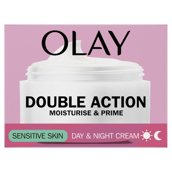 Olay Olay Double Action Moisturise & Prime, Day And Night Cream For Sensitive Skin, For 24H Hydration,50ml