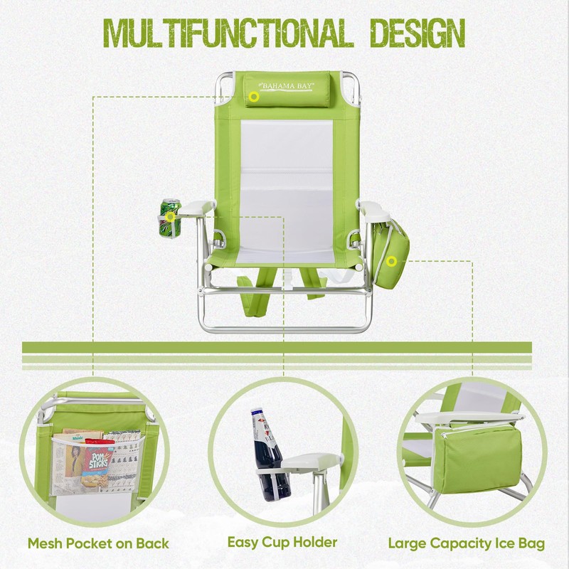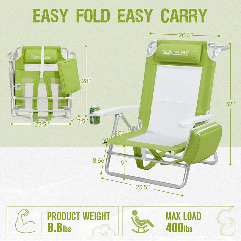 Old Bahama Bay Backpack Beach Chair, Aluminum Lightweight Reclining 5-Position Lounge Chair for Adults Heavy Duty Support 400 LBS Portable Folding with Cooler Bag Camping Chair for Sand Outdoor