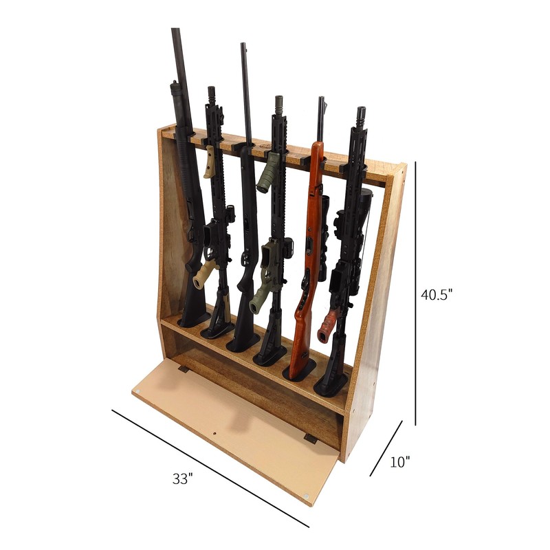 Old Cedar Outfitters Distressed Wood 6 Capacity Rifle and Gun Floor Rack with Compartment