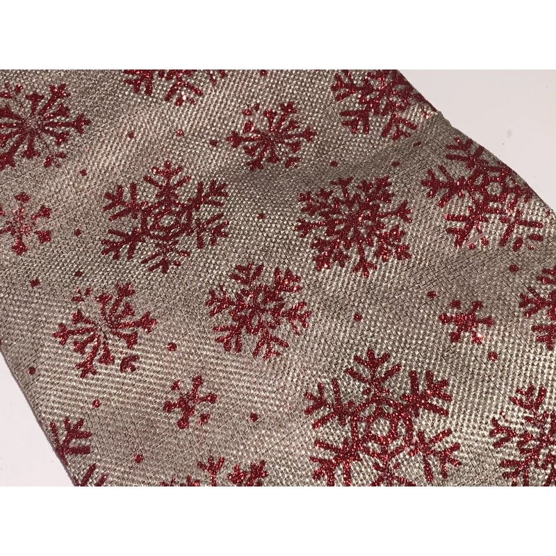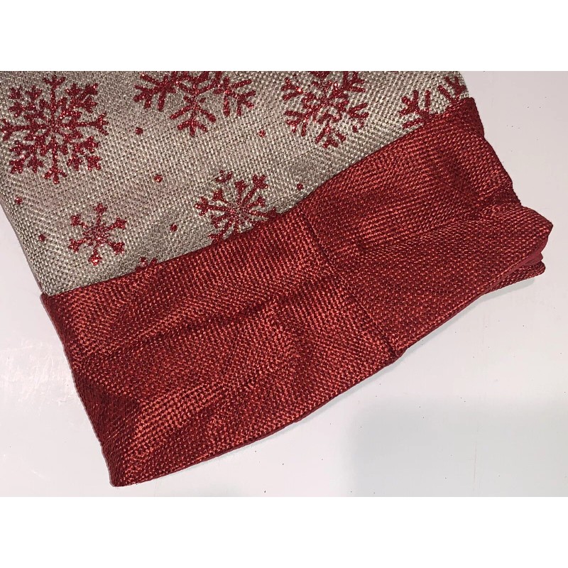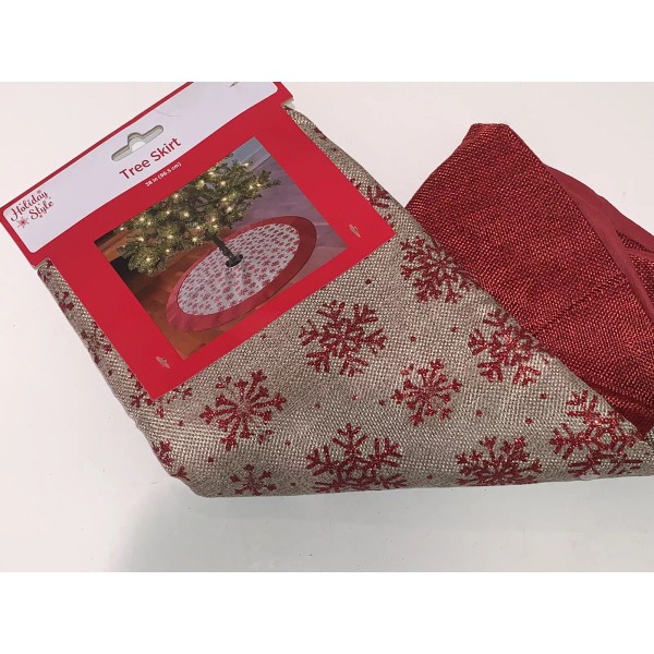 Old East Main Holiday Style Christmas Tree Skirt Rustic Burlap w Red Sparkly Snowflakes 38”