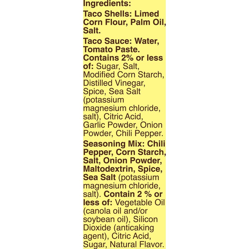 - TACO SHELLS: Dinner kit contains Stand 'N Stuff taco shells, taco sauce, and seasoning mix