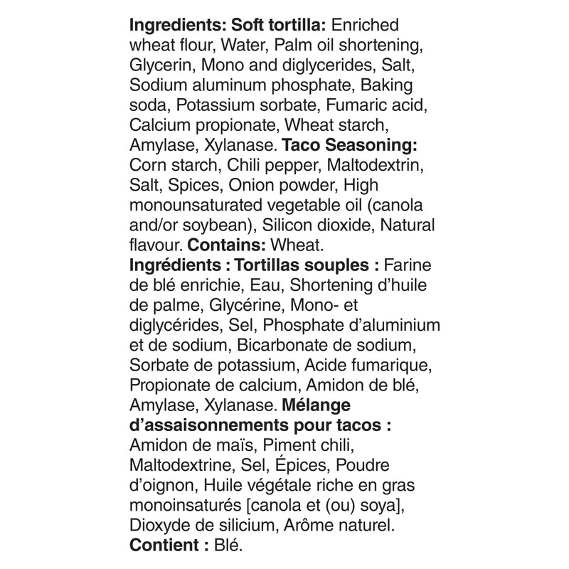 - Contains: 6 soft tortillas and Taco Seasoning Mix