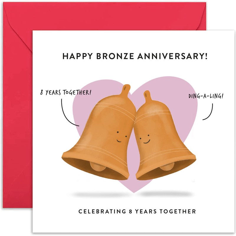 - ❤️ FUNNY ANNIVERSARY CARD: The perfect greeting card to gift your wife, husband, family, or friends celebrating their 8th Bronze wedding anniversary. Make them laugh and smile with this funny illustrated greeting card showing two church bells as as a happily married couple celebrating another year together.