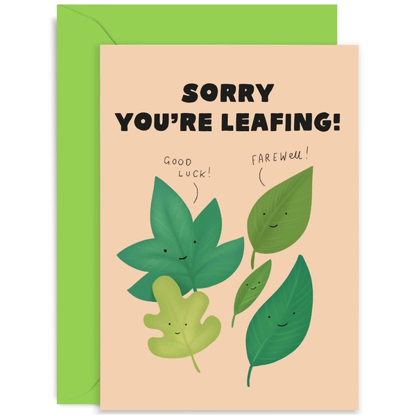 - ✈️ LEAVING CARD: Wish friends, family, and colleagues well on retirement, leaving, new job, or adventure. A beautifully designed and printed greeting card that will stand out on any mantle piece. Designed with a funny leaf illustration.
