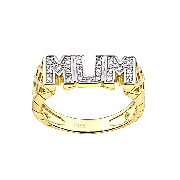 Old English Jewellers 9ct Yellow Gold on Silver MUM Ring size J K L M N O P Q R S T U V - (T)