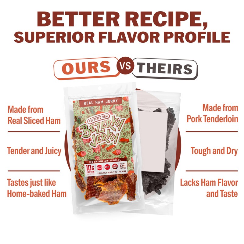 - PREMIUM HAM 🥩 Wrangle a taste of the wild with our premium ham meat — crafted exclusively from 100% ham, it's the real McCoy of jerky goodness. Ensuring an unforgettable flavor experience.