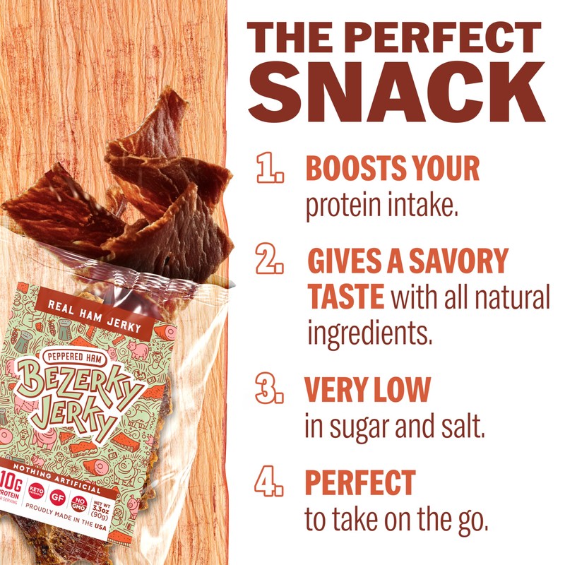 Old Fashioned Real Ham Jerky | Peppered Ham | No Artificial Sweeteners | Keto-Friendly | High Protein Meat Snack | Gluten-Free | Small Batch Handcrafted | Bezerky Jerky | 16 ounce (Pack of 1)