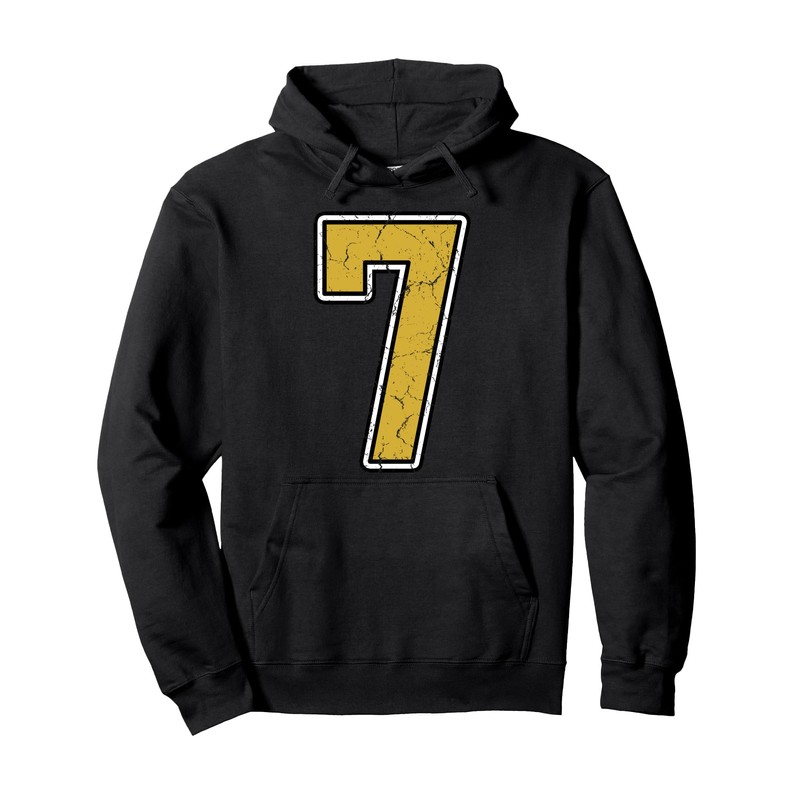 Old Gold Black White Sports Number 7 Jersey Uniform Player Pullover Hoodie