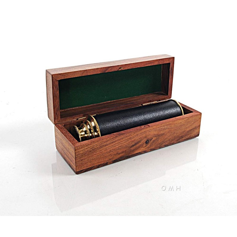 Old Modern Handicrafts ND024 Handheld Telescope with Leather in Wood Box