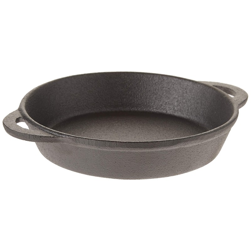 This Old Mountain cast iron mini single serve dish is pre-seasoned and ready to use. This round pan is 7.25 inches in length and 6 inches in diameter. Cast iron retains heat better than any other cooking medium and is the cooking choice of many chefs and home cooks alike. The attractive Old Mountain logo embossed on the bottom of this mini pan adds extra style and value.