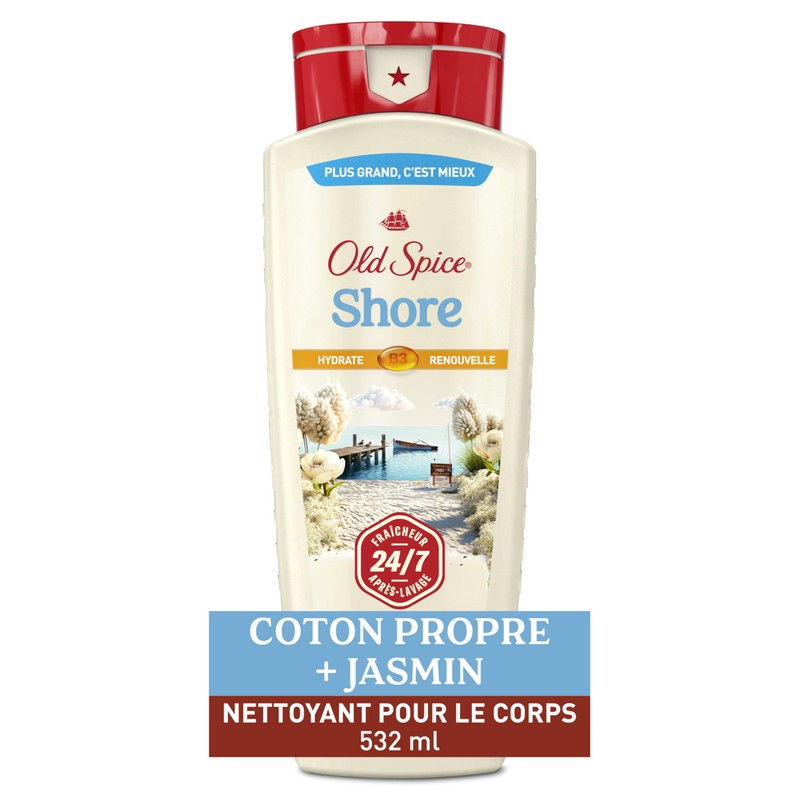 Old Spice Men's Body Wash for Men, Shore Scent, 24/7 Shower Fresh, Refreshing Scents, Cleansing, 532ml