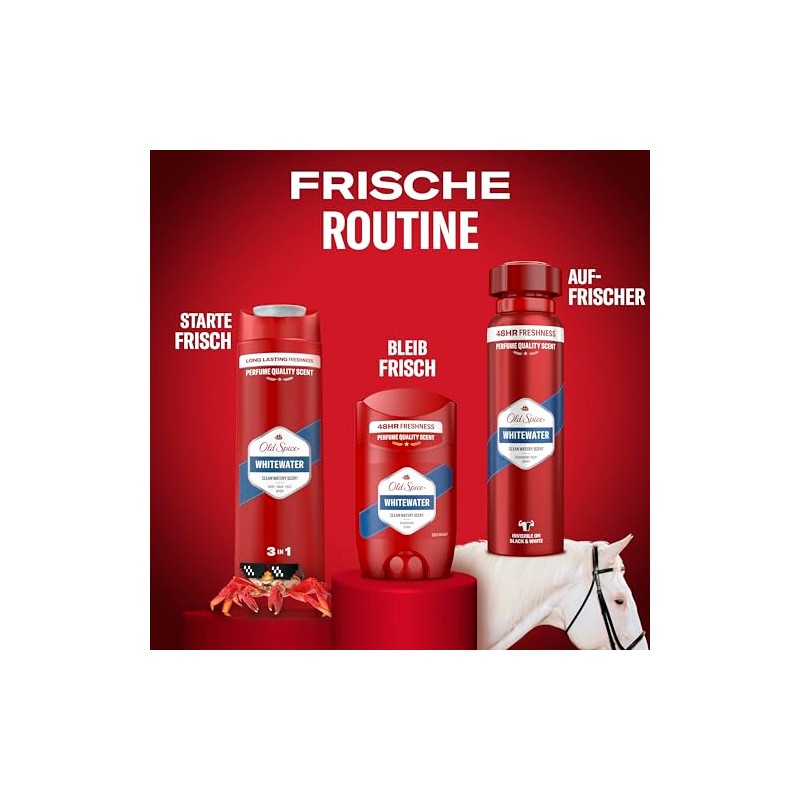 Old Spice Whitewater Set mit Deo Stick für Männer (50 ml) und 3-in-1 Duschgel & Shampoo Herren (250 ml), 48 h Frische, 0% Aluminiumsalze, keine weißen Rückstände und gelben Flecken