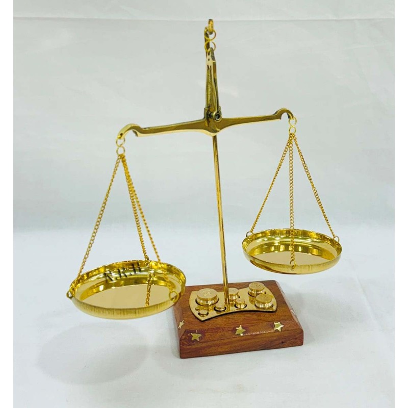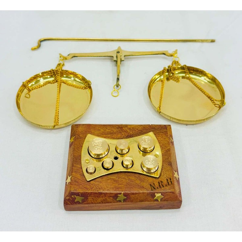 Old Traditional Goldsmith Weight (tarazu) showpiece Brass Weighing Scale Balance Justice Law Scale Decoration - Apothecary Brass Scale Home Décor Antique Weight Balancing Scale Taraju (8 Inch)