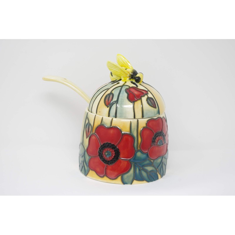 Old Tupton Ware Honey Pot With Spoon Jam Jar 1359 Preserves Yellow Red Poppy