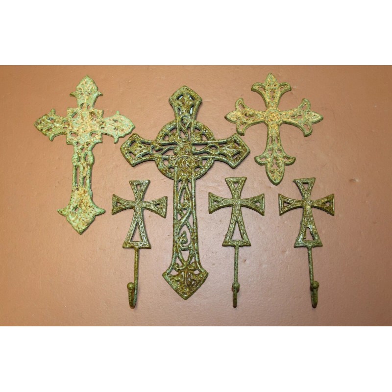 Old World Christian Wall Crosses / Coat Hooks Entryway Decor Set - Lewis 6