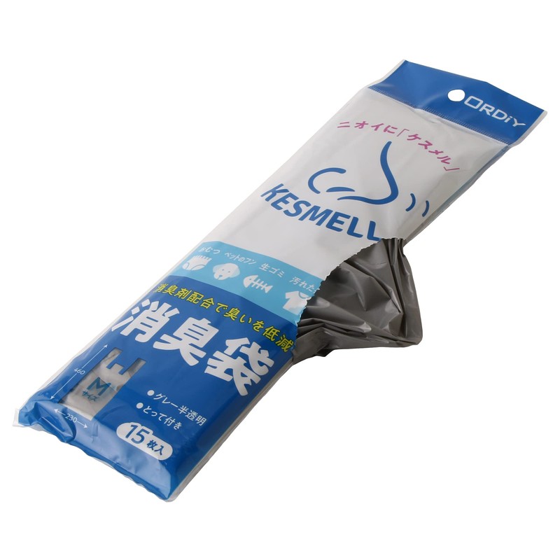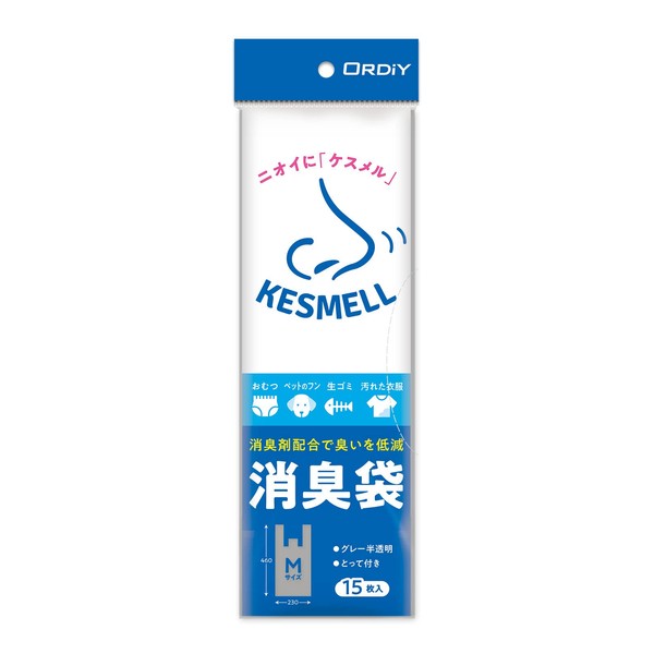 Oldi KESMELL KS-SHGYMT-15 Deodorizing Bags, Garbage Bags with Handle, Gray, Translucent, Pack of 15, Deodorizing Ingredients Included