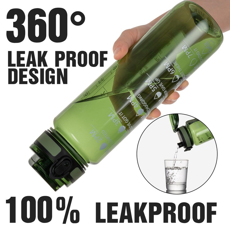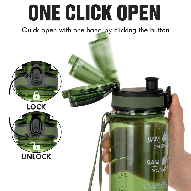 OLDLEY Water Bottle 32oz, Durable and Leakproof Water Bottles Motivational with Time Marker, Tritan, BPA Free, Wide Mouth, Gym, Travel, Home, School, Office, Olive (1 Bottle)