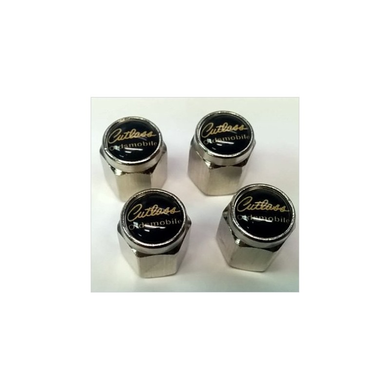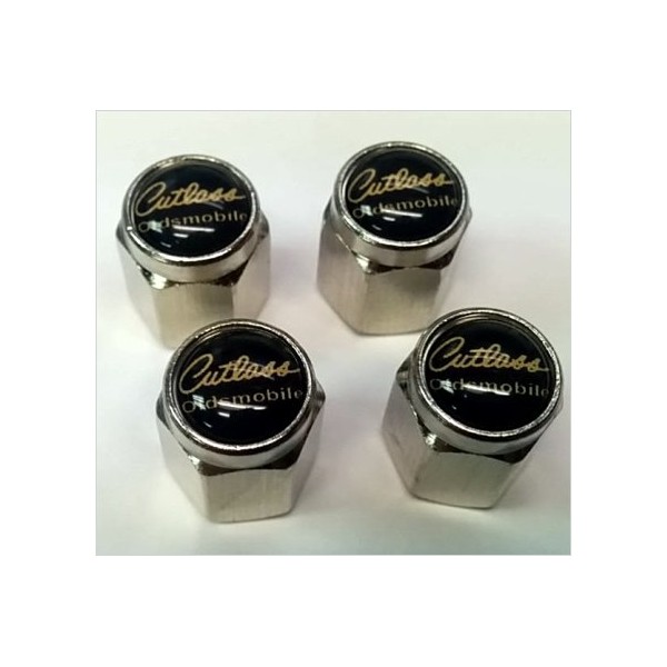 Oldsmobile Cutlass Supreme 442 Valve Stem Caps (Chrome - Black/Gold)