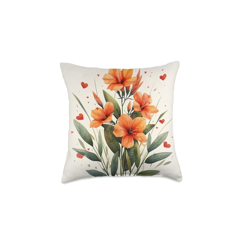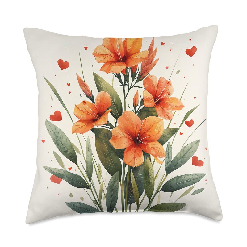 Oleander Flowers And Hearts Boho Style Graphic Throw Pillow
