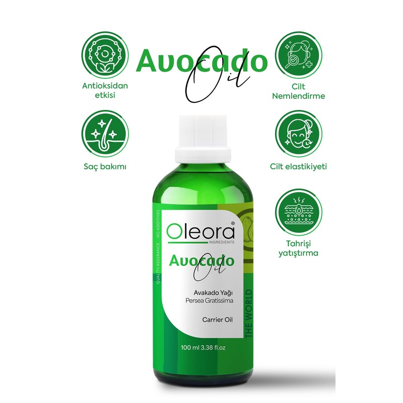 Oleora Avakado Yağı, Sabit Yağ, (Avocado Oil) Carrier Oil, Pure 100 Ml