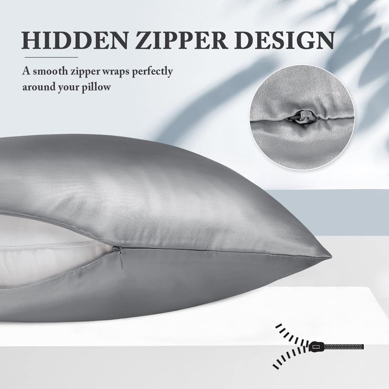OLESILK King Size Silk Pillow Cases for Hair and Skin, Real Pure 19 Momme Mulberry Silk Pillowcase Zippered, Soft Breathable for Sleeping- Silvergrey, 20''×36''