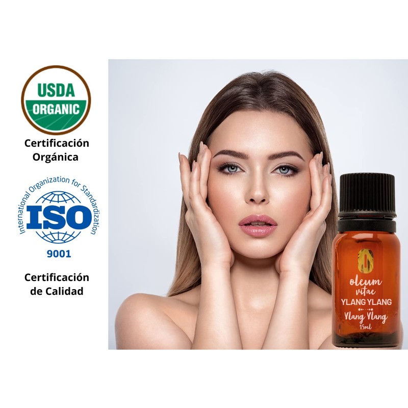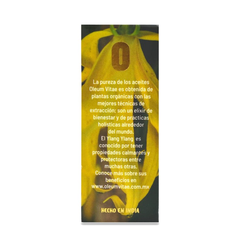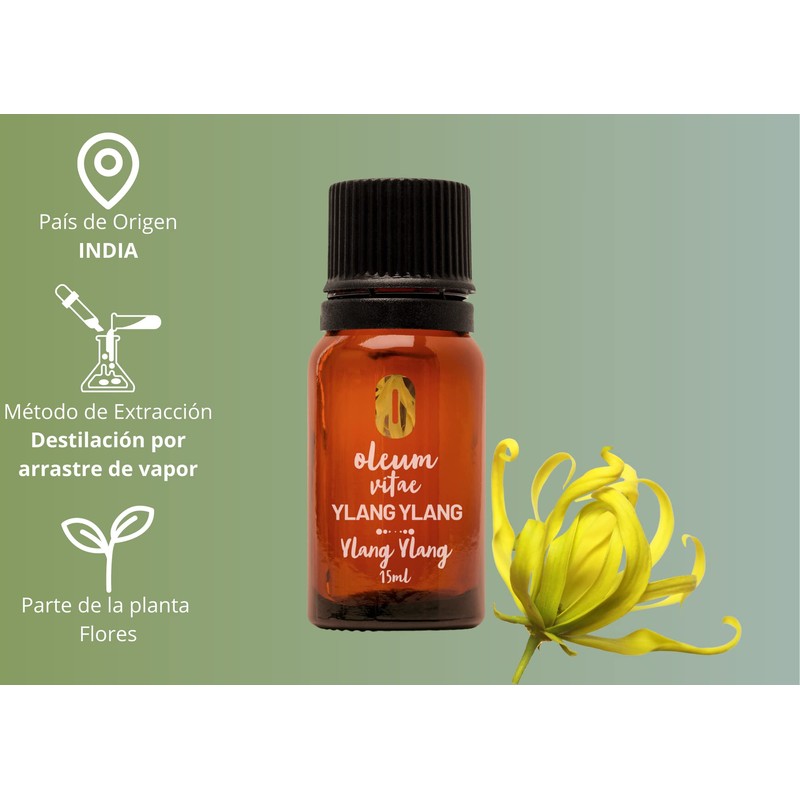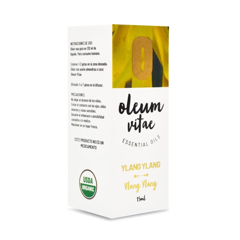 OLEUM VITAE Aceite Esencial de Ylang Ylang. Cananga odorata. 100% Puro y Orgánico. Certificado USDA ORGANIC. Aplicación Interna, Externa y Aromática. 15ml