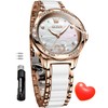 • 💖 Womens Wrist Watches: Rose gold stainless steel & ceramic strap bright luster comfotable fit, Silky smooth to the touch. Multifunction include 100Ft(30M) waterproof & luminous, ladies watches are perfect for everyday wear. (swimming except).