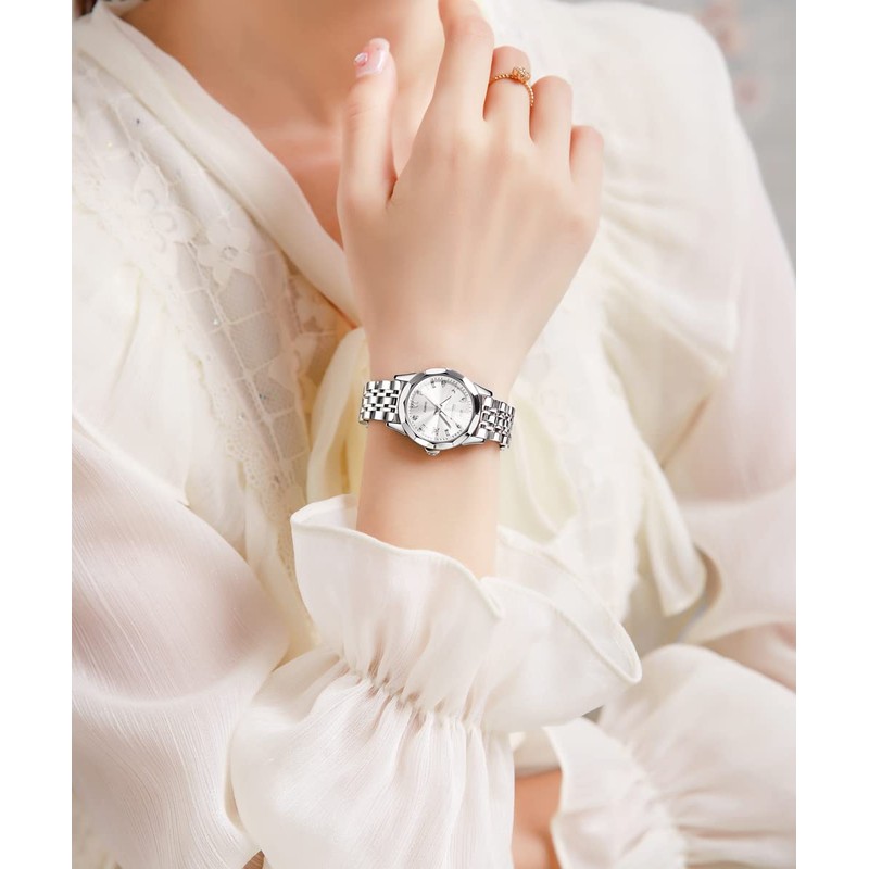 OLEVS Damenuhr Diamant Analoge Armbanduhr mit Kleines Gesicht Silber Edelstahlband wasserdichte Datum Uhr