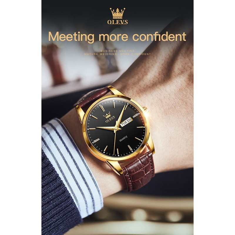 OLEVS Men Watches Waterproof Leather Watch for Men Quartz Watches with Day Date,Gifts for Men