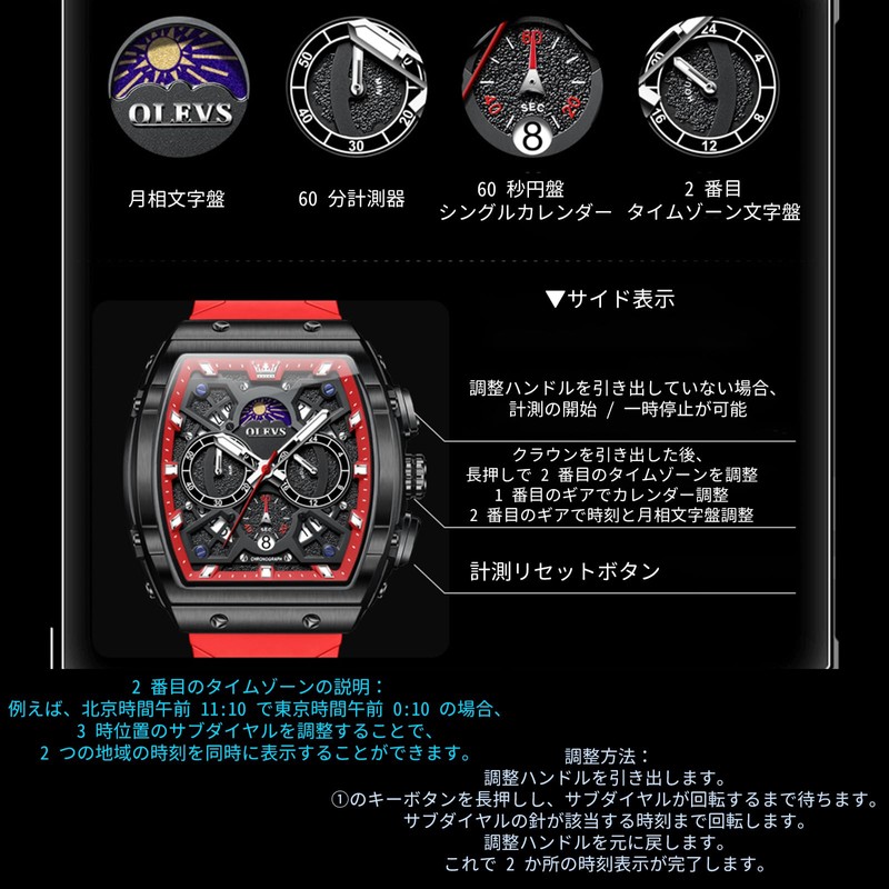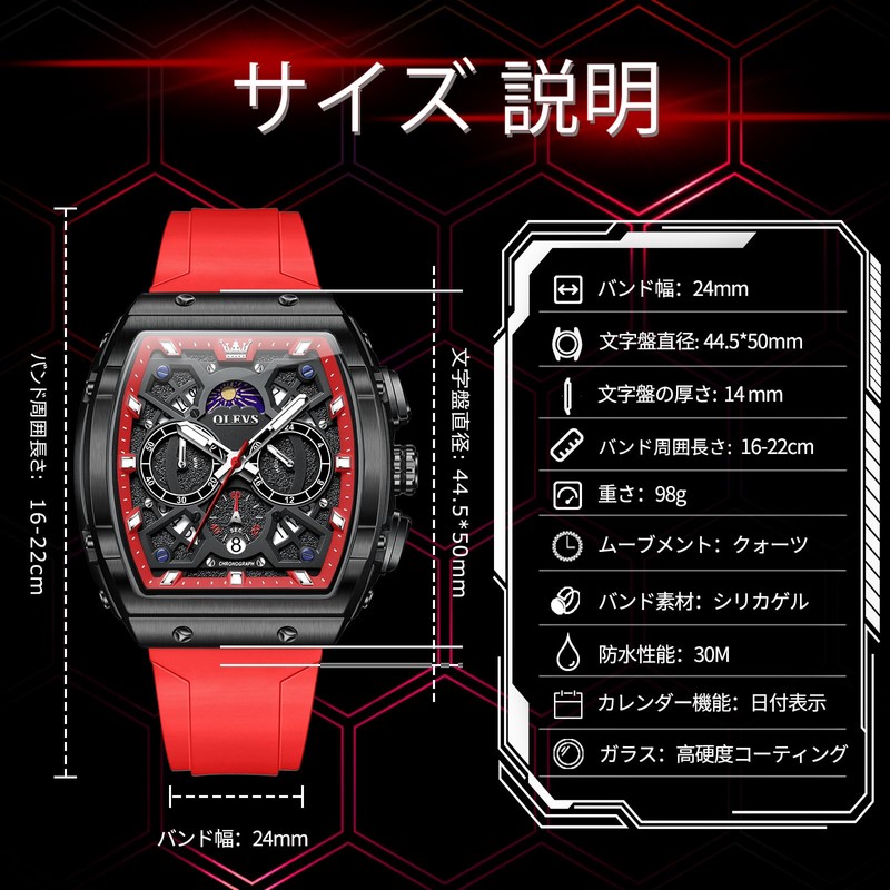 - Popular Casual Watch: Model OLEVS/2942, the watch dial diameter is 44mm, thickness is 14mm (including mirror), square case and textured tape band. From everyday lounging to outdoors, you can choose to match a variety of men's styles