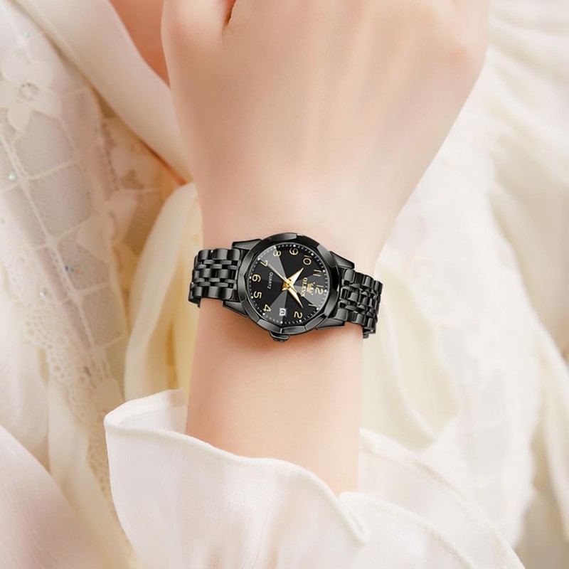 OLEVS Relojes para Mujer Lujo Elegante Acero Inoxidable Fecha Impermeable Reloj Negro Anal贸gico Cuarzo Casual Moda Luminoso Dos Tonos Reloj de Pulsera