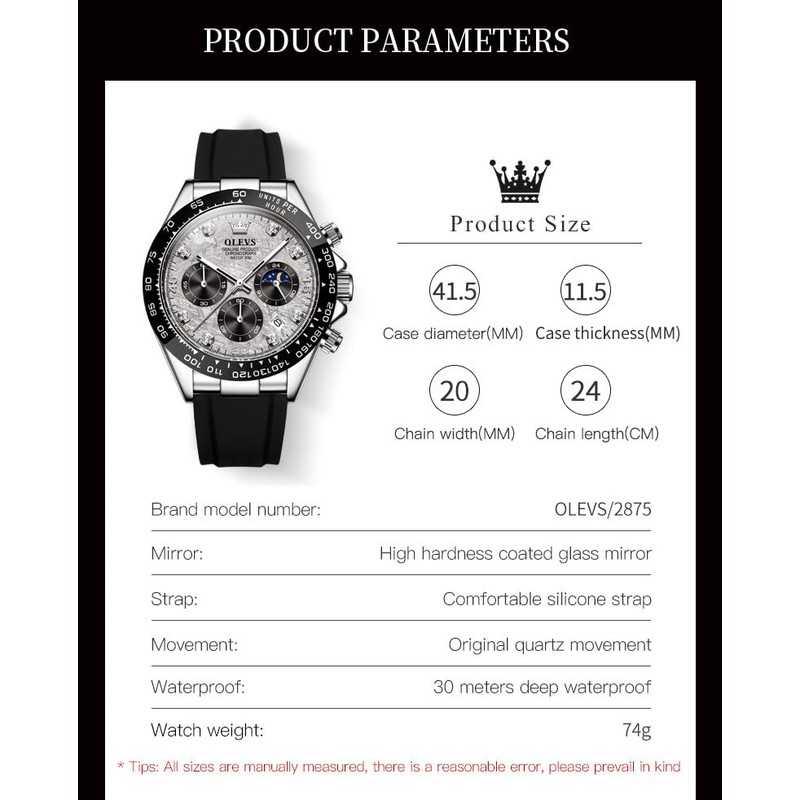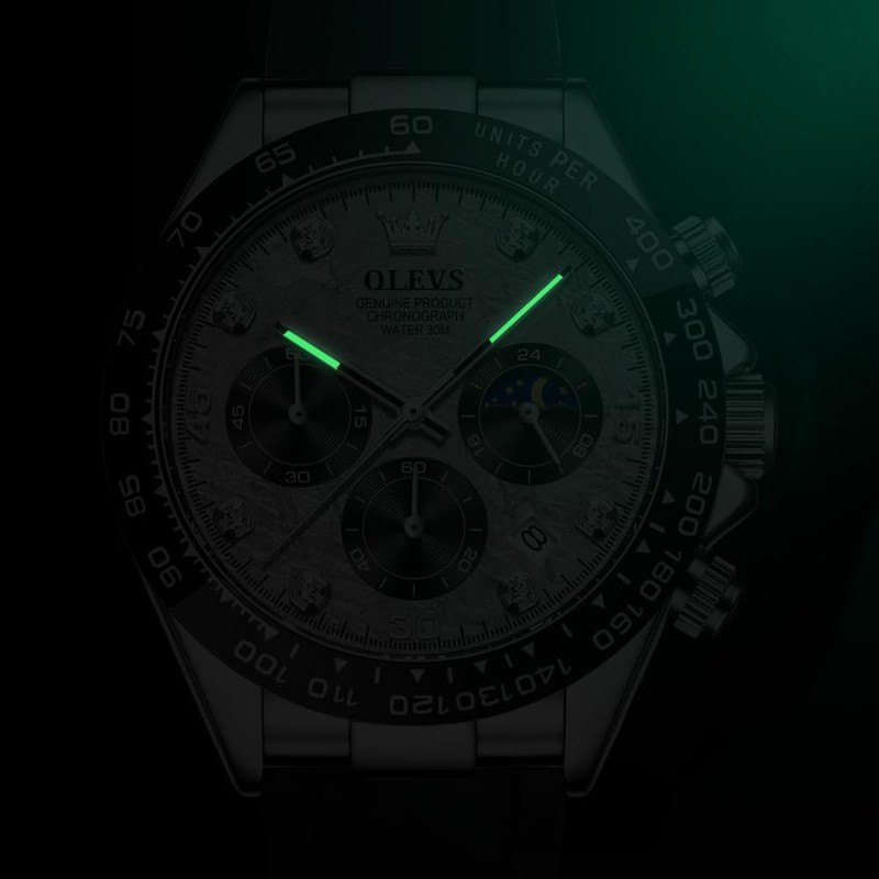 OLEVS Watch Men Luxury Diamond Chronograph Analog Men Wrist Watch Fashion Business Waterproof Date Mens Dress Watche Silver