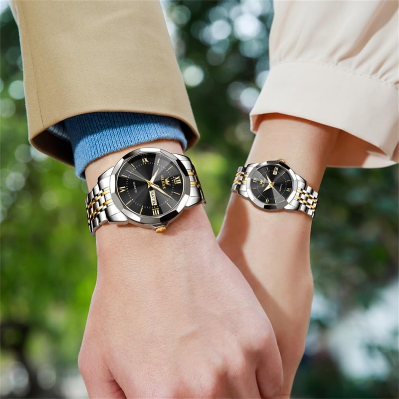 OLEVS Watches for Couple Valentines Mens and Womens Matching Wrist Watches His and Her Couple Set Dating Luxury Dress Romantic Lover Gift Set