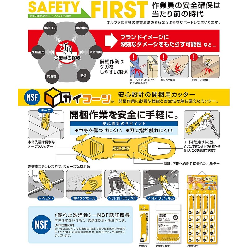 OLFA 238BBL-10P Unpacking Cutter, Caicone, Set of 10, Blue, Stainless Steel Blade, Single Use Type