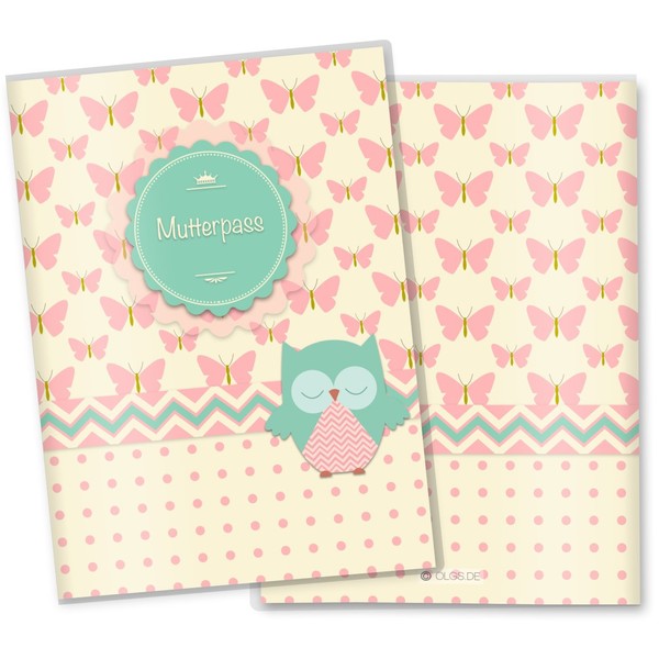 OLGS Maternity Log Cover 3-Piece Butterfly Owl Maternity Log Cover Pregnancy Gift Idea (Maternity Log without Personalisation, Owl)