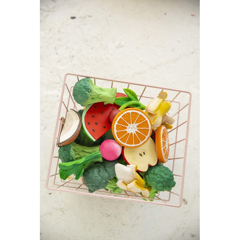 Sweet chewable Coco the Coconut bath toy in the shape of a coconut. The Oli&Carol coconut is handmade and hand-painted with natural colours. It is ideal to grip and put in the mouth without worrying. Can be used as a teething ring, bath toy and as a decoration for the nursery. Stimulates the baby's senses and soothing on the gums.Designed in Barcelona, made in Morocco.