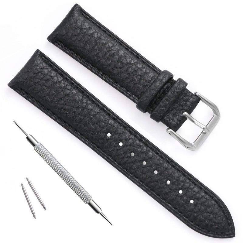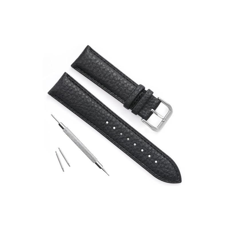 OliBoPo Handmade Vintage Replacement Leather Watch Strap/Watch Band (22mm, Lichee Pattern Black)