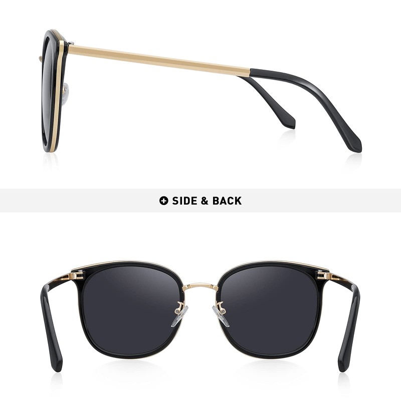 OLIEYE Polarized Sunglasses for Women Men Oversized Rectangular Metal Frame Glasses (Black Frame/Black Lens/Gold Temples, 55)