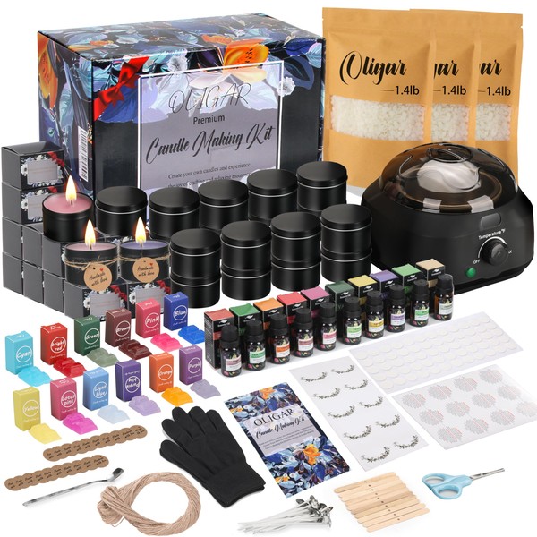 Oligar Complete Candle Making Kit, DIY Candle Making Supplies For Adults,Beginners, Including Bees Wax, Candle Wicks, Dyes, Melting Pot, Rich Scents, Spoon, Candle Jars, Decorative Labels, Rubber Pads