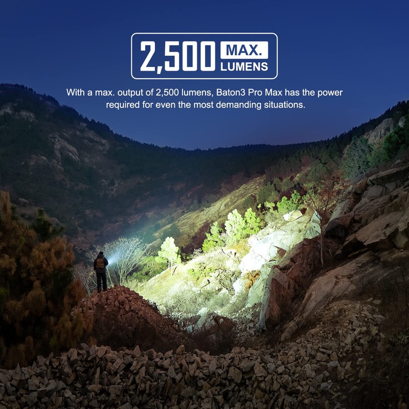 - [Powerful EDC Flashlight] With a max. output of 2,500 lumens and a max. runtime of 60 days at the least lumens, it has the power required for even the darkest of nights.