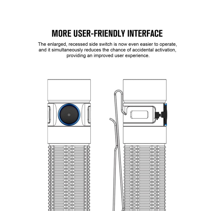 - [More User-friendly Interface] The enlarged and recessed side switch is now even easier to operate while simultaneously reducing the chance of accidental activation, providing an improved user experience.