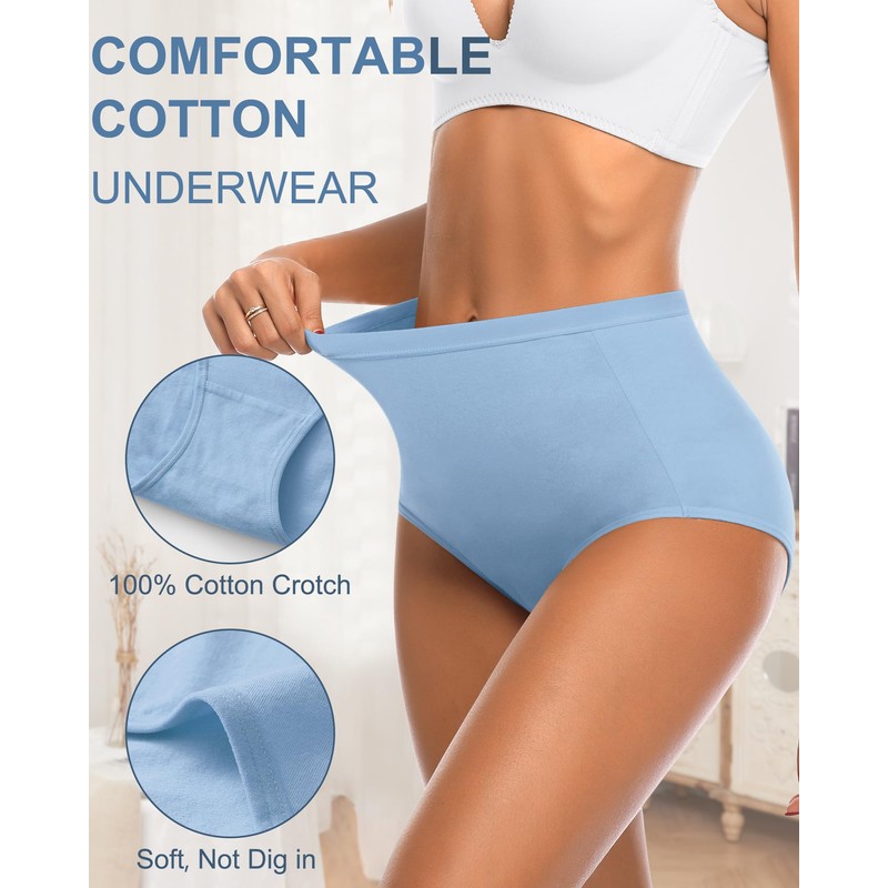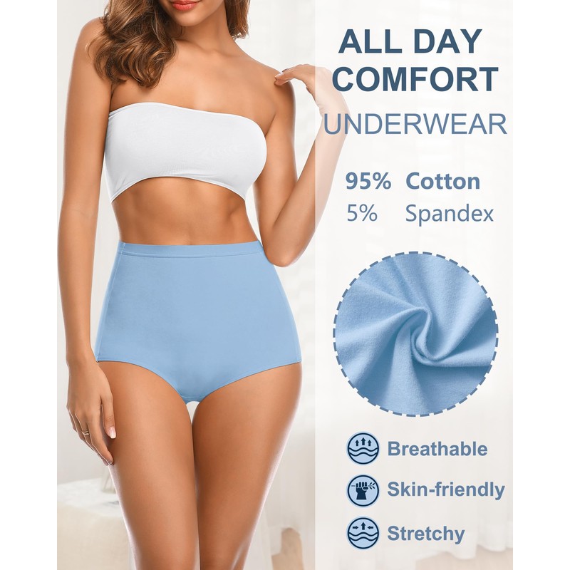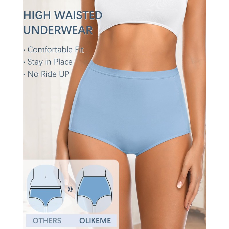 OLIKEME Womens High Waisted Underwear Cotton Full Coverage Brief Post C Section Underwear Ladies Soft No Show Panties Pack