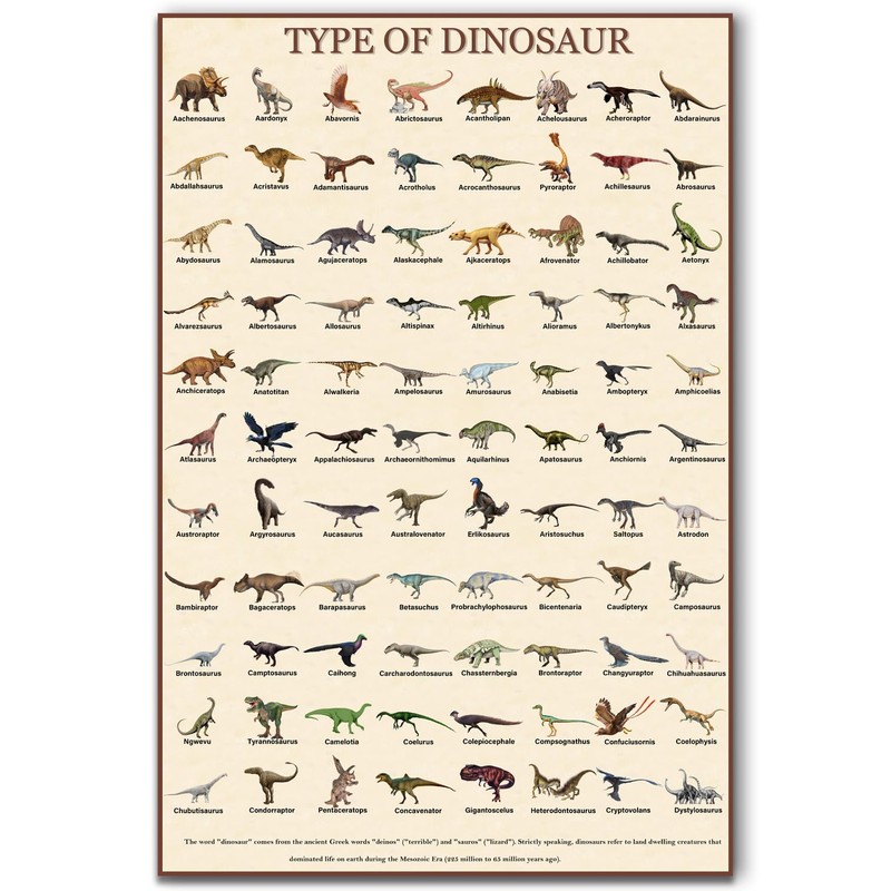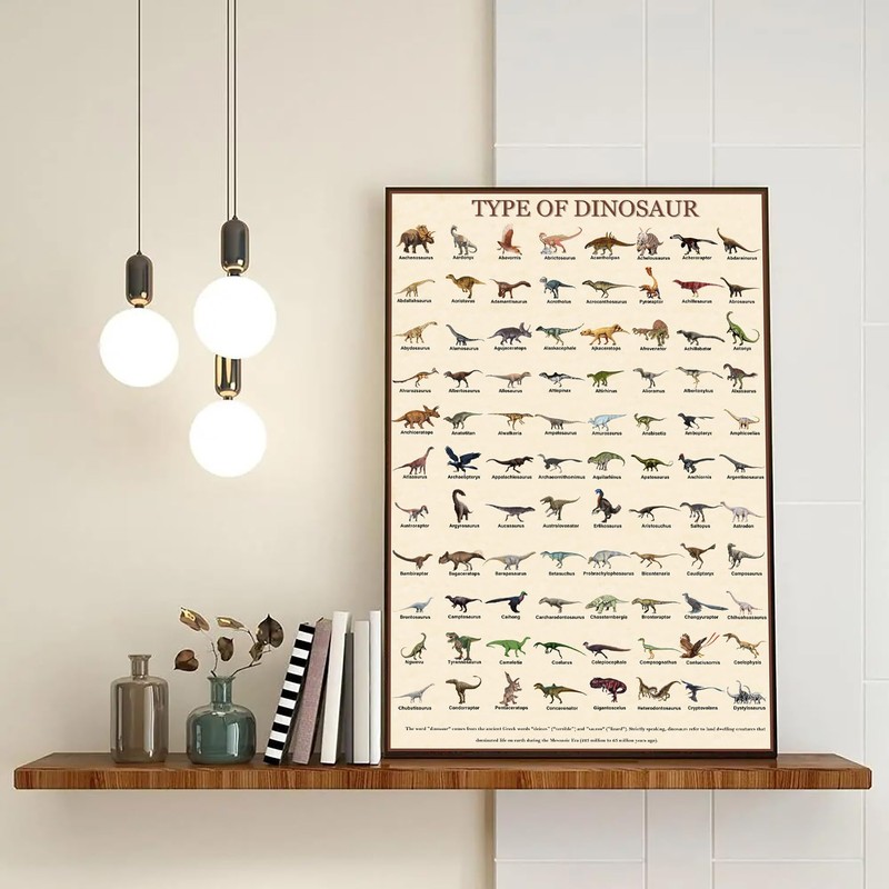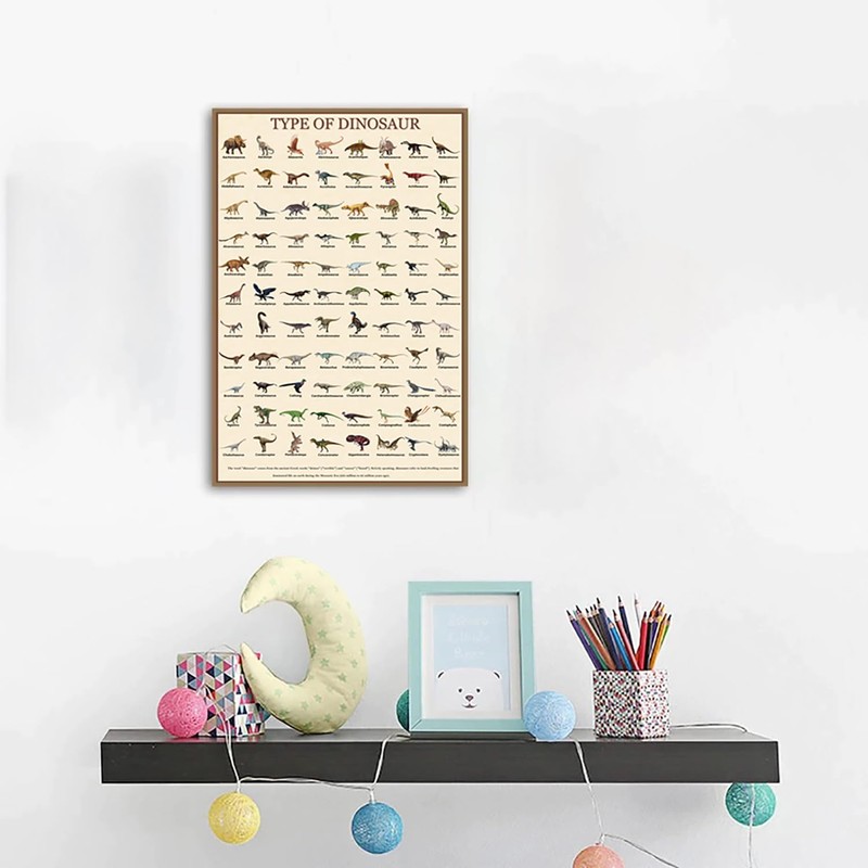 OLIKIUS Ultimate Dinosaur Encyclopedia Poster - 88 Fascinating Prehistoric Creatures for Kids' Rooms, Dinosaur Posters Wall Art Canvas Prints Unframed 12 * 18inches