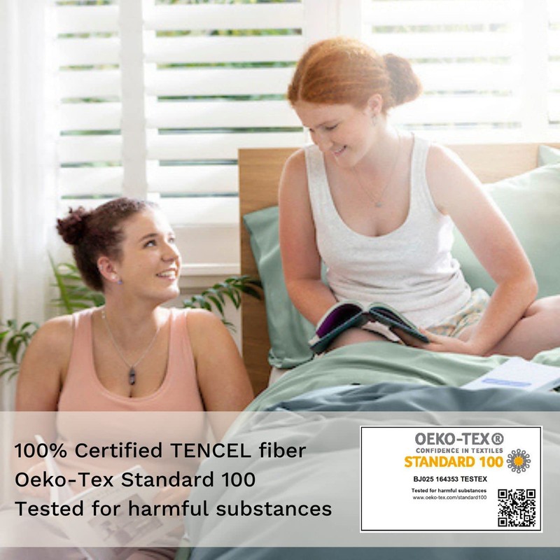 - Planet Friendly & Consciously Created: Made from 100% TENCEL eucalyptus fibers, our luxury vegan silk sheets are Oeko-Tex 100 certified, reflecting our commitment to sustainable, guilt-free planet friendly luxury bedding.