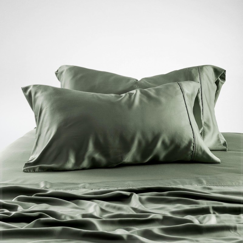 Olive + Crate Eucalyptus Sheets Set – Cooling Sheets for Hot Sleepers – 100% Organic Tencel Lyocell – Full Size – Hypoallergenic, Moisture-Wicking – Deep Pockets – Soft, Durable 54" x 75" [Moss]