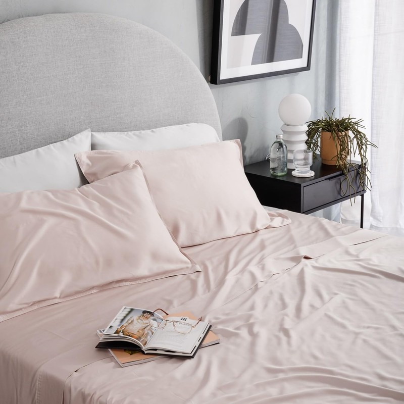 Olive + Crate Tencel Eucalyptus Pillowcases - 100% Tencel Lyocell Cooling Pillow Cases for Hot Sleepers - Hypoallergenic, Moisture-Wicking, Silk Alternative, Vegan - Queen Size Set of 2 [Barely Pink]