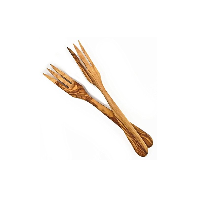Olive Wood Fork With Curved Handle (Set Of 2), Large, Natural